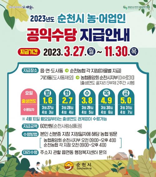 ¼øÃµ½Ã, ¡®2023³â ³ó¾î¾÷ÀÎ °øÀͼö´ç¡¯ Àü¾× Á¶±â Áö±Þ
