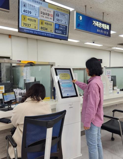[½Åµ¿¾Æ¹æ¼Û °­³²=À̽ŵ¿±âÀÚ]°­³²±¸Ã»Àå Á¶¼º¸íÀº Áö³­ 21ÀϺÎÅÍ ¹æ¹® ¹Î¿ø°´ÀÌ Å°¿À½ºÅ©·Î ´ë±âÇ¥¸¦ ¹ß±ÇÇÏ¸é ´ë±â¹øÈ£¿Í ½Ç±â°£ ´ë±â ÇöȲÀ» ¾Ë·ÁÁÖ´Â ¡®Ä«Ä«¿ÀÅå ¾Ë¸²Åå ¼­ºñ½º¡¯¸¦ ½Ç½ÃÇϰí ÀÖ´Ù. ±¸Ã» ¹Î¿ø¿©±Ç°úÀÇ ¸ðµç ⱸ Ű¿À½ºÅ©¿¡¼­ ½Ç½ÃÇÏ´Â ÀÌ ¼­ºñ½º¡¦