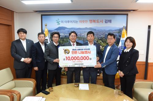 [½Åµ¿¾Æ¹æ¼Û´º½º=½Åµ¿È£±âÀÚ] ´ëÇÑÇѵ·Çùȸ ±èÇØ½ÃÁöºÎ(ÁöºÎÀå Á¶Çر¸)´Â 3ÀÏ ±èÇØ½Ã¿¡ µÅÁö°í±â 1,240kg(1,000¸¸¿ø »ó´ç)À» ±âŹÇß´Ù. ±âʹÞÀº µÅÁö°í±â´Â Ãë¾à°èÃþ¿¡ °ñ°í·ç Àü´ÞµÈ´Ù. Á¶Çر¸ ÁöºÎÀåÀº ¡°ÃÖ±Ù °í¹°°¡¿Í °æ±âħü·Î Èûµç ½Ã±â¸¦ º¸³»°í Àִ¡¦