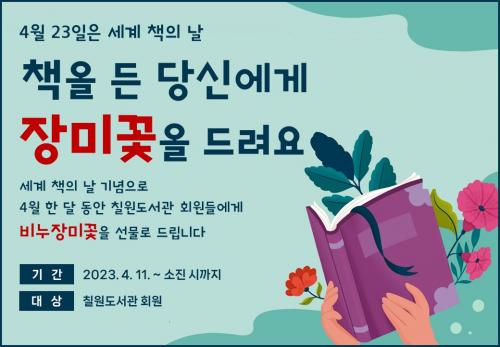 [½Åµ¿¾Æ¹æ¼Û ÇÔ¾È=À̽ŵ¿±âÀÚ] ÇԾȱº¸³ Ä¥¿øµµ¼­°üÀº 4¿ù 23ÀÏ ¼¼°è Ã¥ÀÇ ³¯À» ¸ÂÀÌÇØ ¿À´Â 11ÀϺÎÅÍ Ä¥¿øµµ¼­°ü ȸ¿øµé¿¡°Ô Àå¹Ì ºñ´©²ÉÀ» ÁõÁ¤ÇÑ´Ù. ¡®Ã¥À» µç ´ç½Å¿¡°Ô Àå¹Ì²ÉÀ» µå·Á¿ä¡¯ ºñ´©²É ÁõÁ¤ Çà»ç´Â Ä¥¿øµµ¼­°ü ȸ¿øÀÌ¸é ´©±¸³ª Âü¿©ÇÒ ¼ö ÀÖÀ¸¸ç, µµ¼­¡¦