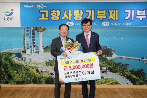 [½Åµ¿¾Æ¹æ¼Û=À̼±Á¾ ±âÀÚ] À̱ͳ² Àü ¹ý¹«ºÎÀå°üÀÌ ÀåÈﱺ¿¡ °íÇâ»ç¶û±âºÎ±Ý 500¸¸¿øÀ» ±âºÎÇß´Ù. ÀÌ Àü Àå°üÀº ÀåÈﱺ ´ë´öÀ¾ Ãâ½ÅÀ¸·Î Á¦61´ë ¹ý¹«ºÎÀå°üÀ» Áö³Â´Ù. ´ëÇѹα¹ üÀ°ÀÎÀç°³¹ß¿ø ÀåÈï À¯Ä¡¿Í °¢Á¾ ±¹ºñ ¿¹»ê È®º¸¿¡ ±â¿©ÇÑ °ø·Î¸¦ ÀÎÁ¤¹Þ¾Æ Áö¡¦