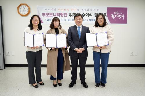 µ¿´ë¹®±¸Ã»Àå ÀÌÇÊÇüÀº ºÎ¸ð Âü¿©¸¦ ÅëÇØ ÃÖÀûÀÇ º¸À°È¯°æÀ» Á¶¼ºÇÏ°í ¼ö¿äÀÚ Áß½ÉÀÇ º¸À°Á¤Ã¥ ½ÇÇöÀ» ½ÇÇöÇϰíÀÚ ¡®ºÎ¸ð¸ð´ÏÅ͸µ´Ü¡¯ÀÇ º»°ÝÀûÀÎ ¿î¿µÀ» ½ÃÀÛÇß´Ù. ¡®ºÎ¸ð¸ð´ÏÅ͸µ´Ü¡¯Àº ¾î¸°ÀÌÁý¿¡ Àç¿øÇϰí ÀÖ´Â ºÎ¸ð¿Í Àü¹®°¡ ´Ü¿øÀÌ ÇÔ²² º¸À° ȯ°æ ¸ð´ÏÅ͸µ ¹×¡¦