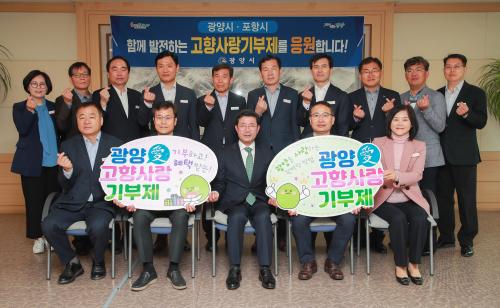 [½Åµ¿¾Æ¹æ¼Û=¹Ú±¤¿Á±âÀÚ] ±¤¾ç½Ã´Â ±âºÎ¹®È­ È®»ê°ú Á¦1È£ ÀڸŰῬµµ½ÃÀÎ °æºÏ Æ÷Ç×½Ã¿Í ¿ìÈ£ÁõÁøÀ» À§ÇØ ±¤¾ç½Ã¿Í Æ÷Ç׽à °£ºÎ°ø¹«¿ø °¢ 50¸íÀÌ °íÇâ»ç¶û±âºÎ¿¡ µ¿ÂüÇß´Ù°í 14ÀÏ ¹àÇû´Ù. À̹ø ±âºÎ´Â Áö³­ 2¿ù 8ÀÏ Á¤ÀÎÈ­ ±¤¾ç½ÃÀåÀÌ °íÇâ»ç¶û±âºÎÁ¦ Âü¿© ºÐÀ§±â¸¦¡¦