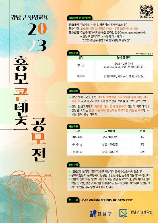 [½Åµ¿¾Æ¹æ¼Û °­³²=À̽ŵ¿±âÀÚ]°­³²±¸Ã»Àå Á¶¼º¸íÀº 4¿ù 24ÀϺÎÅÍ 5¿ù 28ÀϱîÁö Æò»ý±³À° È«º¸ÄÜÅÙÃ÷ °ø¸ðÀüÀ» °³ÃÖÇÑ´Ù. °­³²±¸ Æò»ýÇнÀ ÇÁ·Î±×·¥À» ÅëÇØ ¾Ë°Ô µÈ Æò»ýÇнÀÀÇ ¸Å·ÂÀ» °³¼º ÀÖ°Ô Ç¥ÇöÇϰųª Ưº°ÇÑ ¼ø°£À» ´ãÀº È«º¸ ¿µ»ó ¶Ç´Â À̹ÌÁö¸¦ °ø¸ðÇÑ´Ù. ¿µ¡¦