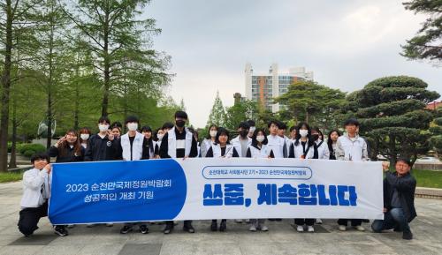 [½Åµ¿¾Æ¹æ¼Û=±è¿ëÈÆ ±âÀÚ] ±¹¸³¼øÃµ´ëÇб³(ÃÑÀå À̺´¿î) »çȸºÀ»ç´ÜÀÌ 2021³âµµºÎÅÍ ½ÃÀÛÇÑ ÇÃ·Î±ë ¡®¾²ÁÝ ±×³ÉÇÕ´Ï´Ù¡¯È°µ¿À» À̾î¹Þ¾Æ ¿ÃÇØµµ¡®¾²ÁÝ °è¼ÓÇÕ´Ï´Ù¡¯¸¦ ½½·Î°ÇÀ¸·Î Áö¿ª»çȸ ÇÃ·Î±ë ¹®È­ Á¤Âø¿¡ ¾ÕÀå¼­°í ÀÖ´Ù. ¼øÃµ´ë ´ëÇлý »çȸºÀ»ç´ÜÀº ÀçÇлý¡¦