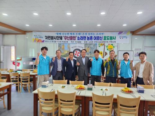 [½Åµ¿¾Æ¹æ¼Û=¹Ú±¤¿Á ±è±â³² ±âÀÚ] ¿©¼ö¿ì»êŬ·´(ȸÀå ±èÅÂÈ£)Àº Áö³­ 28ÀÏ ¼Ò¶ó¸é ÁÖÇⱳȸ¿¡¼­ ´ö¾ç 4¸® Àαٿ¡ °ÅÁÖÇÏ´Â ¾î¸£½ÅµéÀ» ¸ð½Ã°í Àç´É³ª´® È¿µµºÀ»ç Çà»ç¸¦ ÁøÇàÇß´Ù. À̳¯ ¿ì»êŬ·´ ºÀ»çÀÚµéÀº 120¿© ¸íÀÇ ¾î¸£½Åµé¿¡°Ô ½Ä»ç(±¹¹ä)¸¦ ´ëÁ¢Çϰí ÀÌ&#¡¦