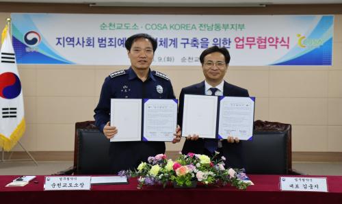 [½Åµ¿¾Æ¹æ¼Û=±è±â³² ±âÀÚ] ¼øÃµ±³µµ¼Ò(¼ÒÀå ±èÁ¾°ï)´Â 5¿ù 9ÀÏ(È­), ¿ÀÀü 10½Ã ¼øÃµ±³µµ¼Ò ´ëȸÀǽǿ¡¼­ ÄÚ»ç ÄÚ¸®¾Æ Àü³²µ¿ºÎÁöºÎ(´ëÇ¥ ±è¿õÁö ¼øÃµ´ë ±³¼ö)¿Í ¹üÁË¿¹¹æÀ» À§ÇÑ Áö¿ª»çȸ Çù·Âü°è ±¸ÃàÀ» ¸ñÇ¥·Î ¾÷¹«Çù¾àÀ» ü°áÇß´Ù. ÄÚ»ç(COSA)´Â¡®ÈÄ¿ø°ú¡¦
