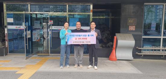 [½Åµ¿¾Æ¹æ¼Û´º½º=½Åµ¿È£±âÀÚ] ÀåÀ¯2µ¿ÇàÁ¤º¹Áö¼¾ÅÍ¿¡¼­´Â ´ëû°è°î »ê±îÄ¡»êÀå ´ëÇ¥ À̰ÇÈñ¾¾°¡ 5¿ù 4ÀÏ(¸ñ) ¾î¸°À̳¯À» ¸Â¾Æ °ü³» °ÅÁÖÇÏ´Â Àú¼Òµæ ¾Æµ¿À» À§ÇØ Çö±Ý 50¸¸¿øÀ» ±âŹÇß´Ù°í ¹àÇû´Ù. ÀåÀ¯2µ¿ ´ëû°è°î¿¡ À§Ä¡ÇÑ »ê±îÄ¡»êÀåÀº ¹é¼÷(¿À¸®, ´ß) Àü¹® À½½Ä¡¦