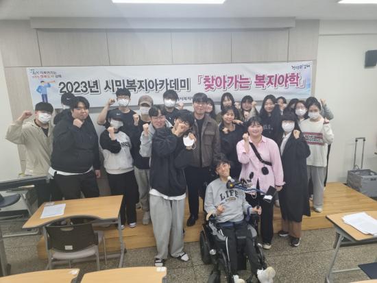 [½Åµ¿¾Æ¹æ¼Û´º½º=½Åµ¿È£±âÀÚ] (Àç)±èÇØ½Ãº¹ÁöÀç´Ü(´ëÇ¥ÀÌ»ç ÃÖÁ¤±Ô)Àº 5¿ù 4ÀÏ 11½Ã ÀÎÁ¦´ëÇб³ ½Å¾î°ü °­Àǽǿ¡¼­ »çȸº¹ÁöÇаú Çлý 25¸íÀ» ´ë»óÀ¸·Î ½Ã¹Îº¹Áö¾ÆÄ«µ¥¹Ì ã¾Æ°¡´Â º¹Áö¾ßÇРƯ°­À» ½Ç½ÃÇß´Ù. Àç´ÜÀÇ ¡®½Ã¹Îº¹Áö ¾ÆÄ«µ¥¹Ì ã¾Æ°¡´Â º¹Áö¾ßÇС¯Àº Áö¿ª¡¦