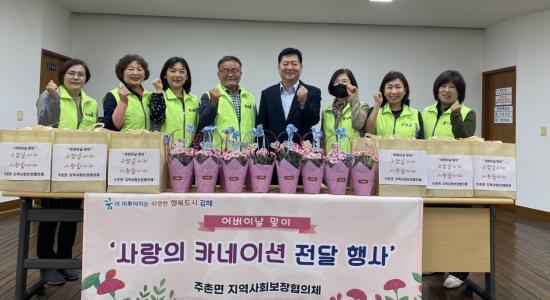 [½Åµ¿¾Æ¹æ¼Û´º½º=½Åµ¿È£±âÀÚ] ±èÇØ½Ã ÁÖÃ̸éÇàÁ¤º¹Áö¼¾ÅÍ´Â Áö³­ 5¿ù 8ÀÏ ÁÖÃ̸éÁö¿ª»çȸº¸ÀåÇùÀÇü(¹Î°£À§¿øÀå ÀÌ»óÈ«, °ø°øÀ§¿øÀå ±ÇÁ¾ÇÐ)¿¡¼­ ¾î¹öÀ̳¯À» ¸Â¾Æ °ü³» Àú¼Òµæ ¾î¸£½Å °¡Á¤¿¡ Ä«³×À̼ǰú »ýÇÊǰÀ» Àü´ÞÇÏ´Â À§¹®Çà»ç¸¦ ÁøÇàÇß´Ù°í ¹àÇû´Ù. À̳¯ Çà»ç¡¦
