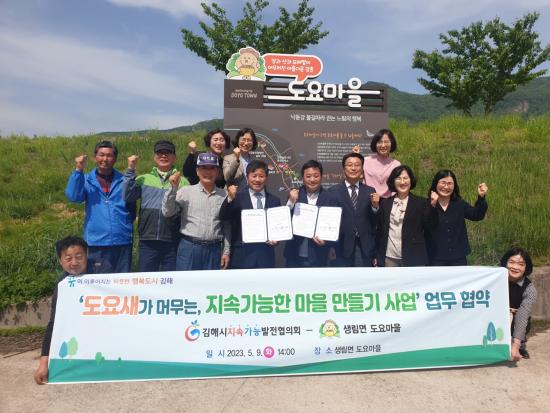 [½Åµ¿¾Æ¹æ¼Û´º½º=½Åµ¿È£±âÀÚ]±èÇØ½Ã´Â 9ÀÏ »ý¸²¸é µµ¿ä¸¶À»È¸°ü¿¡¼­ ±èÇØ½ÃÁö¼Ó°¡´É¹ßÀüÇùÀÇȸ(»óÀÓȸÀå À̽ÿì)¿Í µµ¿ä¸¶À»(ÀÌÀå ±Ç´ëµµ) °£ Áö¼Ó°¡´ÉÇÑ ¸¶À» ¸¸µé±â »ç¾÷ ¾÷¹«Çù¾àÀ» ü°áÇß´Ù°í ¹àÇû´Ù. À̹ø Çù¾à¿¡¼­ Áö¼Ó°¡´É¹ßÀüÇùÀÇȸ´Â Áֹοª·®°­È­ ±³À°, Áö¡¦