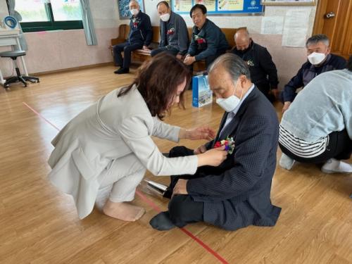 [½Åµ¿¾Æ¹æ¼Û=¹Ú±¤¿Á±âÀÚ] °íÈﱺ µ¿°­¸éÀº Áö³­ 8ÀÏ ¾î¹öÀ̳¯À» ¸Â¾Æ °ü³» °æ·Î´ç°ú ¸¶À»È¸°üÀ» ¹æ¹®ÇØ ¾î¸£½Åµé²² °¨»ç¿Í Á¸°æÀÇ Àǹ̷Π»ç¶ûÀÇ Ä«³×À̼ÇÀ» ´Þ¾Æ µå¸®°í ¶± ¼±¹°À» Àü´ÞÇß´Ù. À̹ø Çà»ç´Â °¡Á¤ÀÇ ´Þ 5¿ùÀ» ¸Â¾Æ °ü³» ¾î¸£½ÅµéÀÇ °Ç°­°ú ¾ÈºÎ¸¦ »ìÇÇ¡¦