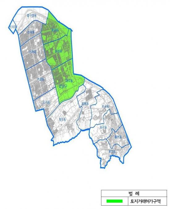 °­³²±¸(±¸Ã»Àå Á¶¼º¸í)°¡ ´ëÄ¡¡¤»ï¼º¡¤Ã»´ãµ¿ ÀÏ´ë 9.2§´¿¡ ÁöÁ¤µÈ ÅäÁö°Å·¡Çã°¡±¸¿ª ÁöÁ¤±â°£ ¸¸·áÀÏÀÌ µµ·¡ÇÔ¿¡ µû¶ó 15ÀÏ ¼­¿ï½Ã¿¡ ÅäÁö°Å·¡Çã°¡±¸¿ª ÇØÁ¦ÀǰßÀ» Á¦ÃâÇÑ´Ù°í ¹àÇû´Ù. ÀÌ Áö¿ªÀº ±¹Á¦±³·ùº¹ÇÕÁö±¸ ¹× Àα٠Áö¿ªÀÇ ºÎµ¿»ê Åõ±â ¼ö¿ä¸¦ ¾ïÁ¦Çϱâ À§ÇØ¡¦