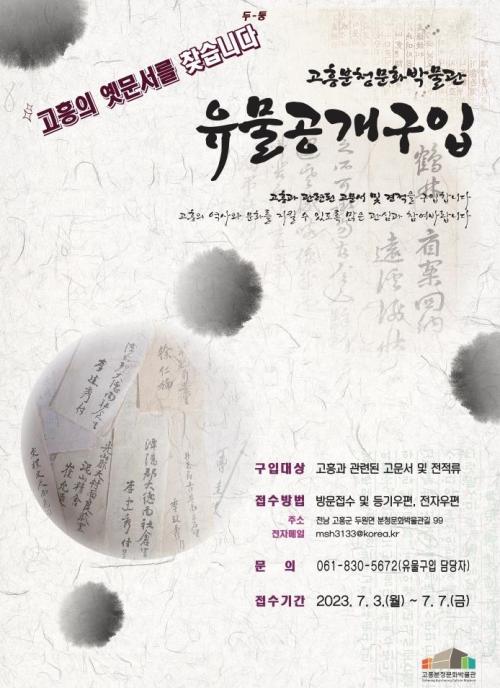 [½Åµ¿¾Æ¹æ¼Û=¹Ú±¤¿Á±âÀÚ] °íÈïºÐû¹®È­¹Ú¹°°üÀº °íÈïÀÇ ¿ª»ç¿Í ¹®È­¸¦ Áö۰í, Áö¿ªÀÇ ¿ª»ç¸¦ ´ãÀº ÇâÅäÀڷḦ Áö¼ÓÀûÀ¸·Î È®º¸¡¤º¸Á¸ÇϰíÀÚ °íÈï°ú °ü·ÃµÈ °í¹®¼­ ¹× ÀüÀû·ù¸¦ °ø°³ ±¸ÀÔÇÑ´Ù°í ¹àÇû´Ù. ±¸ÀÔ´ë»óÀº 1970³â´ë ÀÌÀü °íÈïÁö¿ª ¶Ç´Â Àι°°ú °ü·ÃµÈ °í¹®¡¦