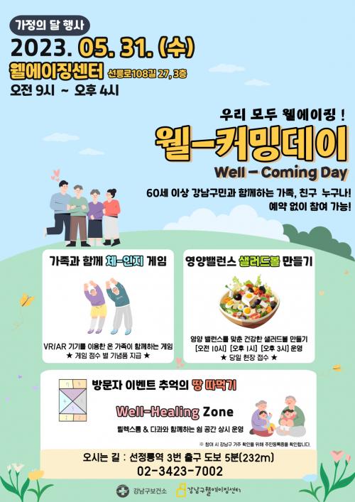 [½Åµ¿¾Æ¹æ¼Û °­³²=À̽ŵ¿±âÀÚ]°­³²±¸(±¸Ã»Àå Á¶¼º¸í)°¡ 5¿ù °¡Á·ÀÇ ´ÞÀ» ¸Â¾Æ 31ÀÏ °­³²±¸À£¿¡ÀÌ¡¼¾ÅÍ¿¡¼­ ¿Â °¡Á·ÀÌ ÇÔ²²ÇÏ´Â ¡®¿ì¸® ¸ðµÎ À£¿¡ÀÌ¡! À£-Ä¿¹Öµ¥ÀÌ(Well-ComingDay)¡¯¸¦ °³ÃÖÇÑ´Ù. 9½ÃºÎÅÍ 16½Ã±îÁö ¼¾Å͸¦ °³¹æÇϰí, °ü³» 60¼¼ ÀÌ»ó ¾î¸£½ÅÀÌ °¡Á·¡¦