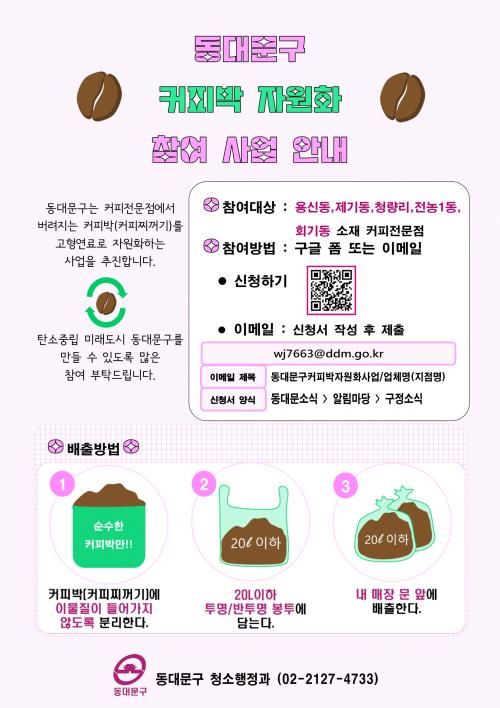 [½Åµ¿¾Æ¹æ¼Û µ¿´ë¹®=À̽ŵ¿±âÀÚ] µ¿´ë¹®±¸(ÀÌÇÊÇü ±¸Ã»Àå)°¡ Ä¿ÇÇÀü¹®Á¡¿¡¼­ ¹èÃâµÇ´Â Ä¿ÇǹÚÀ» Ä¿Çǽ¡, Ä¿ÇÇÆç¸´ µî °íÇü¿¬·á ¹× ºñ·á, Ȱ¼ºÅº Å»Ãë ÇÊÅÍ µîÀ¸·Î ´Ù¾çÇÏ°Ô ÀçȰ¿ëÇÏ´Â ¡®Ä¿ÇÇ¹Ú ÀÚ¿øÈ­ »ç¾÷¡¯À» ÃßÁøÇÑ´Ù. ¡®Ä¿Çǹڡ¯À̶õ Ä¿ÇǸ¦ ³»¸®°í ³­ ÈÄÀÇ Ä¿ÇÇ¡¦