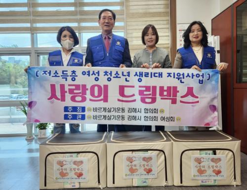 [½Åµ¿¾Æ¹æ¼Û´º½º=¾çÇýÁö±âÀÚ]±èÇØ½Ã ÀåÀ¯1µ¿ ÇàÁ¤º¹Áö¼¾ÅÍ´Â Áö³­ 25ÀÏ ¡®¹Ù¸£°Ô»ì±â¿îµ¿ ±èÇØ½Ã ÇùÀÇȸ ¿©¼ºÈ¸¡¯¿¡¼­ °ü³» Àú¼Òµæ ¿©¼º û¼Ò³â ¼¼ °¡Á¤À» À§ÇØ ¿©¼ºÀ§»ý¿ëǰ »ç¶ûÀÇ µå¸²¹Ú½º¸¦ ±âŹÇß´Ù°í ¹àÇû´Ù. ¹Ù¸£°Ô»ì±â¿îµ¿ ±èÇØ½Ã ÇùÀÇȸ ¹× ¿©¼ºÈ¸´Â ½Ã¹Î°ú¡¦