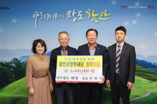 [ÇÔ¾È ½Åµ¿¾Æ¹æ¼Û=À̽ŵ¿±âÀÚ] â¿ø½Ã ¸¶»êÇÕÆ÷±¸ »êÈ£µ¿¿¡ À§Ä¡ÇÑ ¼¼¹«¹ýÀÎ Å¿µ ¾Èº´¼® ´ëÇ¥´Â 30ÀÏ ÇԾȱºÃ»À» ¹æ¹®ÇØ Áö¿ªÀÎÀçÀ°¼ºÀ» À§ÇÑ ÀåÇбâ±Ý 500¸¸ ¿øÀ» ±º ÀåÇÐÀç´Ü¿¡ ±âŹÇß´Ù. À̳¯ ±âŹ½Ä¿¡´Â ¾Èº´¼® ´ëÇ¥¿Í °ü°èÀÚ°¡ Âü¼®ÇØ Áö¿ªÀÇ ±³À° ¹ßÀü°ú ÀÎÀ硦