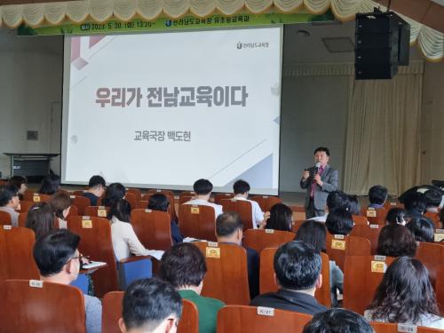 [½Åµ¿¾Æ¹æ¼ÛÀü³²=À̽ŵ¿±âÀÚ]Àü¶ó³²µµ±³À°Ã»(±³À°°¨ ±è´ëÁß)ÀÌ 5¿ù 30ÀÏ(È­) Àü¶ó³²µµ±³À°Ã»±³À°¿¬¼ö¿ø¿¡¼­ ¡®ÇÔ²² ÁغñÇÏ´Â 2022 °³Á¤ ±³À°°úÁ¤¡¯À̶ó´Â ÁÖÁ¦ ¾Æ·¡ ÃʵîÇб³ ±³°¨ ´ë»ó ¿¬¼ö¸¦ ½Ç½ÃÇß´Ù. À̹ø ¿¬¼ö´Â 2024Çг⵵ºÎÅÍ ¼øÂ÷ÀûÀ¸·Î Àû¿ëµÇ´Â ¡®2022 °³¡¦