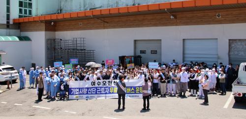 [½Åµ¿¾Æ¹æ¼Û=±è±â³² ±âÀÚ] ¿©¼ö»ó°øÈ¸ÀǼÒ(ȸÀå ÀÌ¿ë±Ô)¿Í ¿©¼ö½Ã(½ÃÀå Á¤±â¸í)´Â Áö³­ 5¿ù 31ÀÏ(¼ö), ¿©¼ö ¿Àõ»ê´ÜÀ» ¹æ¹®ÇÏ¿© ±Ù·ÎÀÚ 200¿© ¸íÀÌ Âü¼®ÇÑ °¡¿îµ¥ ¡®±â¾÷»ç¶û »ê´Ü±Ù·ÎÀÚ ¹«·áÅë±Ù¹ö½º¡¯ È«º¸Ä·ÆäÀÎÀ» ½Ç½ÃÇÏ¿´´Ù. Áö³­ 2020³âºÎÅÍ Áö¿ª »ê¾÷¡¦