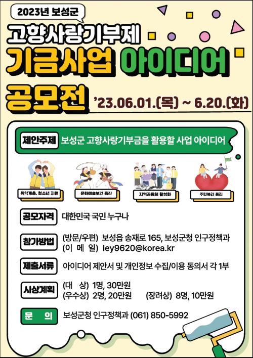 [½Åµ¿¾Æ¹æ¼Û=¹Ú±¤¿Á±âÀÚ] º¸¼º±ºÀº ¿À´Â 20ÀϱîÁö °íÇâ»ç¶û±âºÎÁ¦ ½ÃÇàÀ» ³Î¸® ¾Ë¸®°í ¸ð±ÝµÈ ±âºÎ±Ý Ȱ¿ë »ç¾÷ ¹ß±¼À» À§ÇØ ±â±Ý»ç¾÷ ¾ÆÀ̵ð¾î °ø°³¸ðÁýÀ» ÁøÇàÇÑ´Ù°í ¹àÇû´Ù. ´ëÇѹα¹ ±¹¹ÎÀÌ¸é ´©±¸³ª ÀÀ¸ð °¡´ÉÇϸç, °ø¸ð ºÐ¾ß´Â ¡ãÃë¾à°èÃþ Áö¿ø ¹× û¼Ò³â¡¦