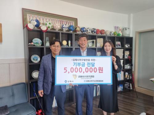 [½Åµ¿¾Æ¹æ¼Û´º½º=ÃÖ¼ÛÈ­±âÀÚ] ±èÇØ½Ã½ºÆ÷Ã÷Ŭ·´(ÀÌ»çÀå À强µ¿)Àº Áö³­ 7ÀÏ ½ºÆ÷Ã÷Ŭ·´ »ç¹«½Ç¿¡¼­ ±èÇØ½Ã¾ß±¸¼ÒÇÁÆ®º¼Çùȸ¿¡ ¾ß±¸¹ßÀü±â±Ý 500¸¸¿øÀ» ±âŹÇß´Ù°í 8ÀÏ ¹àÇû´Ù. ±èÇØ½Ã½ºÆ÷Ã÷Ŭ·´ÀÌ ±âŹÇÑ ¾ß±¸¹ßÀü±â±ÝÀº »çȸÀξ߱¸¸®±× ¿î¿µ ¼öÀÍ±Ý Áß ÀϺÎÀÌ¸ç ±èÇØ¡¦