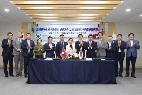 [ÇÔ¾È ½Åµ¿¾Æ¹æ¼Û=À̽ŵ¿±âÀÚ]ÇԾȱºÀº Áö³­ 14ÀÏ °æ»ó³²µµÃ» µµÁ¤È¸Àǽǿ¡¼­ ¶ó¿À½º ³ëµ¿»çȸº¹ÁöºÎ¿Í ¿Ü±¹ÀÎ °èÀý±Ù·ÎÀÚ À¯Ä¡Çù·ÂÀ» À§ÇÑ ¾çÇØ°¢¼­(MOU)¸¦ ü°áÇß½À´Ï´Ù. À̹ø Çù¾à½ÄÀº ¹ÙÀÌį īŸ³Ä ¶ó¿À½º ³ëµ¿»çȸº¹ÁöºÎ Àå°ü ÀÏÇàÀÇ ¹æÇÑ ÀÏÁ¤¿¡ ¸ÂÃç 5°³ ½Ã¡¦
