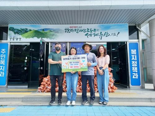 [ÇÔ¾È ½Åµ¿¾Æ¹æ¼Û=À̽ŵ¿±âÀÚ] ÇԾȽôϾîŬ·´(ȸÀå ¾Èº¹½Ç)¿¡¼­´Â °ü³» Àú¼Òµæ °¡±¸ÀÇ °Ç°­ÇÑ ¸Ô°Å¸® Á¦°øÀ» À§ÇÑ ¾çÆÄ(5kg) 300¸ÁÀ» ÇԾȱº¿¡ ±âŹÇß´Ù°í 16ÀÏ ¹àÇû´Ù. ±âŹ½Ä¿¡´Â ¾Èº¹½Ç ȸÀåÀ» ºñ·ÔÇÑ È¸¿øµé°ú °ü°èÀÚµéÀÌ Âü¼®ÇßÀ¸¸ç, ±âŹµÈ ¾çÆÄ´Â °ü³» ¾î·Á¡¦