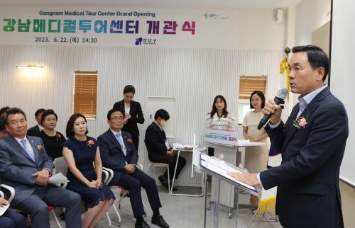 [½Åµ¿¾Æ¹æ¼Û °­³²=À̽ŵ¿±âÀÚ]°­³²±¸°¡ 22ÀÏ ¾Ð±¸Á¤·Î 161¿¡¼­ °­³²¸ÞµðÄÃÅõ¾î¼¾ÅÍ(GMTC) °³°ü½ÄÀ» °¡Á³´Ù. °³°ü½Ä¿¡´Â (»ç)°­³²±¸ÀÇ·á°ü±¤Çùȸ, ÀÇ·á°ü±¤ °ü°èÀÚ µî 70¿©¸íÀÌ Âü¼®Çß´Ù. ¼¾ÅÍ¿¡´Â ¿µ¾î¡¤Áß±¹¾î¡¤ÀϾ·¯½Ã¾Æ¾î µî 4°³ ¾ð¾î¸¦ ±¸»çÇÏ´Â Á÷¿øÀÌ »óÁÖÇÏ¡¦