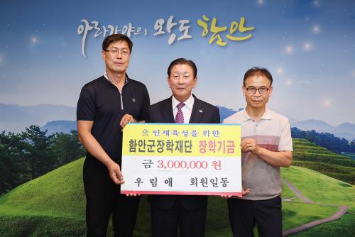 [½Åµ¿¾Æ¹æ¼Û ÇÔ¾È=À̽ŵ¿±âÀÚ]ÇԾȱº Ä¥¼­Áö¿ª ÁֹεéÀÇ Ä£¸ñ¸ðÀÓÀÎ ¿ì¸²¾Ö¿¡¼­ 23ÀÏ ÇԾȱºÃ»À» ¹æ¹®ÇØ Áö¿ªÀÎÀç À°¼ºÀ» À§ÇÑ ÀåÇбâ±Ý 300¸¸¿øÀ» ±âŹÇß´Ù. À̳¯ ±âŹ½Ä¿¡´Â À±ÅÂÇÏ È¸Àå°ú ¼ÛÁ¾Çö ȸ¿øÀÌ Âü¼®ÇØ ÇԾȱºÀåÇÐÀç´Ü ÀÌ»çÀåÀÎ Á¶±ÙÁ¦ ±º¼ö¿¡°Ô ÀåÇбâ±Ý¡¦