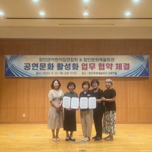 ÇԾȹ®È­¿¹¼úȸ°üÀº Áö³­ 22ÀÏ ÇԾȹ®È­¿¹¼úȸ°ü ´Ù¸ñÀûȦ¿¡¼­ ¹®È­ Ȱ¼ºÈ­ 4È£ ¾÷¹« Çù¾àÀ» ü°áÇß´Ù. À̳¯ Çù¾à½Ä¿¡´Â ÇԾȱº¾î¸°ÀÌÁý¿¬ÇÕȸ¿Í ¹ÚÇý¿µ ȸÀå°ú ÇԾȹ®È­¿¹¼úȸ°ü Á¤¼®°æ ¼ÒÀåÀÌ Âü¼®ÇßÀ¸¸ç, Çù¾à¼­ ¼­¸í°ú ±³È¯¿¡ ÀÌ¾î ¡â¹®È­¿¹¼úȸ°ü °ø¿¬ ´Üü °ü¡¦