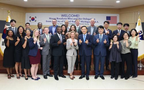 [½Åµ¿¾Æ¹æ¼Û ÇÔ¾È=À̽ŵ¿±âÀÚ]°­³²±¸(±¸Ã»Àå Á¶¼º¸í)°¡ Ä£¼±µµ½ÃÀÎ ¹Ì±¹ ¹Ì½Ã°£ÁÖ ±×·£Áî·¡ÇÇÁî½Ã ¹æ¹®´ÜÀ» ¸Â¾Æ ¾ç µµ½Ã °£ È­ÇÕ°ú Çù·ÂÀ» ´ÙÁ³´Ù. ·ÎÀ߸° ºí¸®½º ½ÃÀåÀ» Æ÷ÇÔÇÑ ¹æ¹®´Ü 15¸íÀº À̳¯ ¿ÀÀü 11½Ã Á¶¼º¸í °­³²±¸Ã»ÀåÀ» ¸¸³ª °æÁ¦¡¤°ü±¤¡¤ÀÇ·áÇõ½Å¡¤¹®È­¡¦