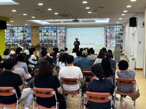 [½Åµ¿¾Æ¹æ¼Û=¹Ú±¤¿Á±âÀÚ] ±¤¾çÁ߸¶µµ¼­°üÀº Áö³­ 1ÀÏ ±¤¾ç½Ã¹ÎÀ» ´ë»óÀ¸·Î ¿î¿µÇÑ ¹®ÇÐ ÁÖÁ¦ ¿ù°£ Àι®ÇÐ 3Â÷ °­¿¬À» ¼ºÈ²¸®¿¡ ¸¶ÃÆ´Ù°í ÀüÇß´Ù. À̹ø °­¿¬Àº ³ªÅÂÁÖ ½ÃÀÎÀ» ÃÊÃ»ÇØ ¡®½Ã¸¦ ÅëÇØ Çì¾Æ¸®´Â »îÀÇ ÁöÇý¡¯¸¦ ÁÖÁ¦·Î ÁöÄ£ »î ¼Ó¿¡¼­ ½Ã°¡ ÁÖ´Â °¨µ¿, ½Ã¸¦¡¦