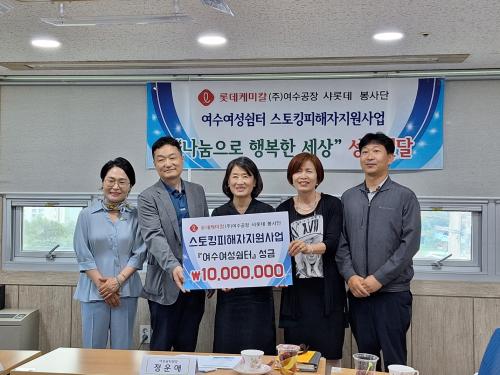 [½Åµ¿¾Æ¹æ¼Û=±è±â³² ±âÀÚ] ¹Î´öÈñ ¿©¼ö½ÃÀÇȸ ȯ°æº¹ÁöÀ§¿øÀåÀÌ ½ºÅäÅ· ÇÇÇØÀÚ Áö¿ø »ç¾÷À» ÃßÁø ÁßÀÎ ¡®¿©¼ö ¿©¼º½°ÅÍ¡¯·ÎºÎÅÍ °¨»çÆÐ¸¦ ¹Þ¾Ò´Ù. ¿©¼ö ¿©¼º½°ÅÍ(¿øÀå Á¤¿î¾Ö)´Â 3ÀÏ ·Ôµ¥ÄɹÌÄ® ¿©¼ö°øÀå(°øÀåÀå Á¶Á¤ÈÆ) »þ·Ôµ¥ ºÀ»ç´Ü°ú ¹Î´öÈñ À§¿øÀå¿¡°Ô °¨»ç¡¦