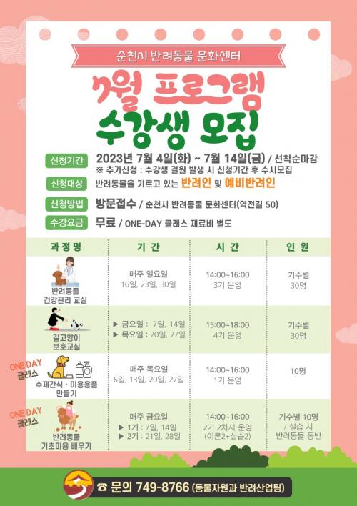 [½Åµ¿¾Æ¹æ¼Û=±è¿ëÈÆ ±âÀÚ] ¼øÃµ½Ã(½ÃÀå ³ë°ü±Ô)´Â Áö³­ 6¿ùºÎÅÍ ¡®¹Ý·Áµ¿¹° ¹®È­¼¾ÅÍ¡¯¿¡¼­ ¾Ö°ß»þ¿ö½Ç, ½Ç³»³îÀÌÅÍ(Áß¡¤¼ÒÇü°ß, ´ëÇü°ß) µî ½Ã¼³ ÀϺθ¦ °³¹æÇÏ°í ¹Ý·Áµ¿¹° °Ç°­°ü¸®¡¤¼öÁ¦°£½Ä¡¤±âÃÊ¹Ì¿ë ¹è¿ì±â µî ±âÃÊ¼Ò¾ç °­Á·Π´Ù¾çÇÑ ÇÁ·Î±×·¥À» ¿î¿µÇÏ¿© Å« È£¡¦