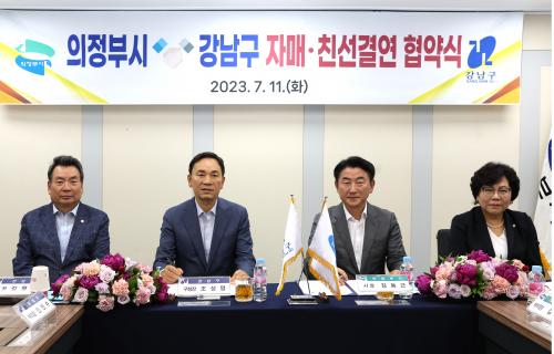 [½Åµ¿¾Æ¹æ¼Û °­³²=À̽ŵ¿±âÀÚ]°­³²±¸°¡ 11ÀÏ ÀÇÁ¤ºÎ½Ãû¿¡¼­ ÀÇÁ¤ºÎ½Ã¿Í Ä£¼±°á¿¬À» ü°áÇß´Ù. ´ëÇѹα¹ ´ëÇ¥ µµ½ÃÀÎ °­³²±¸¿Í °æ±â ºÏºÎÀÇ Á߽ɵµ½ÃÀÎ ÀÇÁ¤ºÎ½Ã´Â ÇÔ²² Çõ½ÅÇàÁ¤°ú µ¿¹Ý¼ºÀåÀÇ ±âƲÀ» ¸¶·ÃÇϱâ À§ÇØ ´Ù¾çÇÑ ºÐ¾ß¿¡¼­ ±ä¹ÐÇÑ Çù·Â°ú ±³·ù¸¦ Çϱâ·Î »ó¡¦