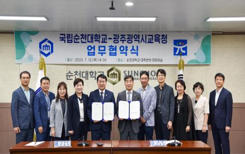 [½Åµ¿¾Æ¹æ¼Û=±è¿ëÈÆ ±âÀÚ] ±¹¸³ ¼øÃµ´ëÇб³(ÃÑÀå À̺´¿î)´Â 13ÀÏ ´ëÇк»ºÎ ´ëȸÀǽǿ¡¼­ ÃÊ¡¤ÁßµîÇб³¿ÍÀÇ ÀÚ¿ø ±³·ù¸¦ ÅëÇÑ ¿¬°èÇÁ·Î±×·¥ °øµ¿ ¿î¿µ ¹× Áö¿ª »ê¾÷ ¸ÂÃãÇü ¿ì¼ö ÀÎÀç À°¼ºÀ» À§ÇØ ±¤ÁÖ±¤¿ª½Ã±³À°Ã»°ú ¾÷¹«Çù¾àÀ» ü°áÇß´Ù°í ¹àÇû´Ù. Çù¾à½Ä¿¡´Â ¼ø¡¦
