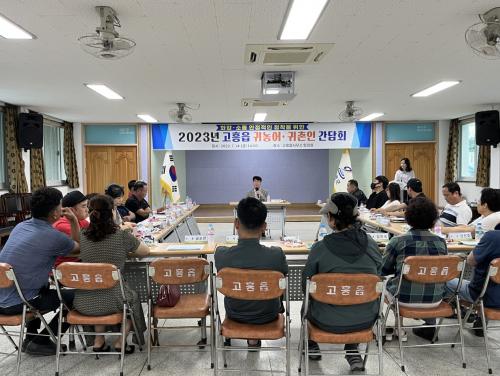 [½Åµ¿¾Æ¹æ¼Û=¹Ú±¤¿Á±âÀÚ] °íÈﱺ °íÈïÀ¾(À¾Àå ¼Û¹Îö)Àº Áö³­ 14ÀÏ À¾ ȸÀǽǿ¡¼­ °ü³»·Î ÀüÀÔÇØ Á¤ÂøÇϰí ÀÖ´Â ±Í³ó¡¤±ÍÃÌÀÎ 30¿© ¸íÀ» ÃÊÃ»ÇØ °£´ãȸ¸¦ °³ÃÖÇß´Ù. À̳¯ °£´ãȸ´Â °íÈﱺÀÇ ±Í³ó¡¤±ÍÃÌÀÎ Áö¿ø»ç¾÷À» ¾È³»Çϰí Áö¿ªÁֹεé°úÀÇ ¿ø¸¸ÇÑ °ü°è Çü¼º ¹× È­¡¦