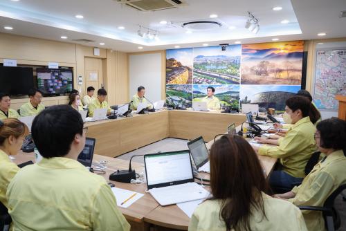 [½Åµ¿¾Æ¹æ¼Û´º½º=¾çÇýÁö±âÀÚ] ±èÇØ½ÃÀÇȸ(ÀÇÀå ·ù¸í¿­)´Â Áö³­ 18ÀÏ, °æ³² Àü¿ª¿¡ È£¿ì°æº¸°¡ ¹ßÈ¿µÈ °¡¿îµ¥ ÁýÁßÈ£¿ì¿¡ µû¸¥ ´ëºñ»óȲÀ» Á¡°ËÇϱâ À§ÇØ ½Ãû Àç³­Á¾ÇÕ»óȲ½ÇÀ» ¹æ¹®Çß´Ù. À̳¯ ¹æ¹®¿¡´Â ±èÇØ½ÃÀÇȸ ·ù¸í¿­ ÀÇÀå°ú ¾È¼±È¯ µµ½Ã°Ç¼³À§¿øÀåÀÌ Âü¼®ÇØ Á¡¡¦
