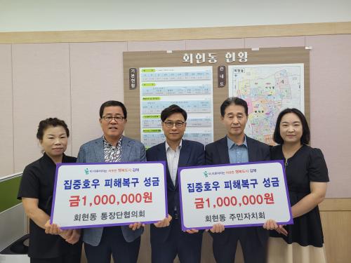 [½Åµ¿¾Æ¹æ¼Û´º½º=¾çÇýÁö±âÀÚ] ±èÇØ½Ã ȸÇöµ¿ ÁÖ¹ÎÀÚġȸ(ȸÀå ±è»ï±Ã)¿Í ÅëÀå´ÜÇùÀÇȸ(ȸÀå ±èÇмö)´Â ÁýÁßÈ£¿ì ¼öÇØº¹±¸¸¦ À§ÇØ ¼º±Ý 200¸¸¿øÀ» °æ³²»çȸº¹Áö°øµ¿¸ð±Ýȸ¿¡ 20ÀÏ ±âŹÇß´Ù. À̹ø ¼º±Ý ¸ð±ÝÀº 7.9.ºÎÅÍ ¹ß»ýÇÑ È£¿ì·Î ¸¹Àº Àθí ÇÇÇØ¿Í ÀÌÀç¹ÎÀÌ ¹ß¡¦