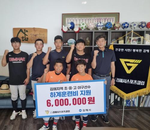 [½Åµ¿¾Æ¹æ¼Û´º½º=ÃÖ¼ÛÈ­±âÀÚ] (»ç)±èÇØ½Ã½ºÆ÷Ã÷Ŭ·´(ÀÌ»çÀå À强µ¿)Àº Áö³­ 26ÀÏ ½ºÆ÷Ã÷Ŭ·´ »ç¹«±¹¿¡¼­ ±èÇØÁö¿ª ÃÊ¡¤Áß¡¤°í ¾ß±¸¼±¼ö ÇϰèÈÆ·Ã Áö¿ø±Ý 600¸¸¿øÀ» Àü´ÞÇß´Ù°í 27ÀÏ ¹àÇû´Ù. À̳¯ Àü´Þ½ÄÀº ±èÇØ°í, ³»µ¿Áß, »ï¼ºÃÊ ¾ß±¸ºÎ °¨µ¶°ú ¼±¼öµéÀÌ Âü¼®ÇÑ °¡¿îµ¥¡¦