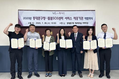 [½Åµ¿¾Æ¹æ¼Û µ¿´ë¹®=À̽ŵ¿±âÀÚ]µ¿´ë¹®±¸´Â 26ÀÏ µ¹º½»ç°¢Áö´ë ¾ø´Â µ¿´ë¹®±¸¸¦ ¸¸µé±â À§ÇØ µ¹º½SOS¼¾ÅÍ Çù¾à ±â°£ÀÌ ¸¸·áµÈ 7°³ ¼­ºñ½º Á¦°ø±â°ü Áß ±â°ü ÀçÆò°¡¸¦ ÅëÇØ ÃÑ 5°³ ±â°üÀ» ¼±Á¤ÇØ ¾÷¹«Çù¾àÀ» ü°áÇß´Ù. À̹ø ÀçÇù¾à ±â°üÀº ÀϽÃÀç°¡ ¼­ºñ½º Á¦°ø±â°ü, ¡¦