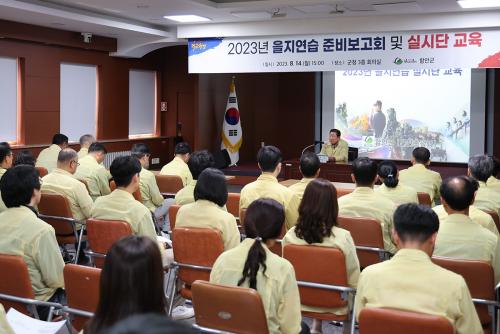 [½Åµ¿¾Æ¹æ¼Û ÇÔ¾È=À̽ŵ¿±âÀÚ]ÇԾȱºÀº 14ÀÏ ¿ÀÈÄ 3½Ã ±ºÃ» 3Ãþ ´ëȸÀǽǿ¡¼­ 2023³â À»Áö¿¬½À Áغñº¸°íȸ¸¦ °³ÃÖÇß´Ù. À̳¯ Áغñº¸°íȸ¿¡´Â Á¶±ÙÁ¦ ±º¼ö¸¦ ºñ·ÔÇØ °£ºÎ°ø¹«¿øµé°ú À»Áö¿¬½À ½Ç½Ã´Ü 100¿© ¸íÀÌ Âü¿©ÇØ Áغñ»çÇ×À» Á¡°ËÇÏ°í ¸·¹ÙÁö ¿¬½À Áغñ¿¡ ¹ÚÂ÷¸¦¡¦