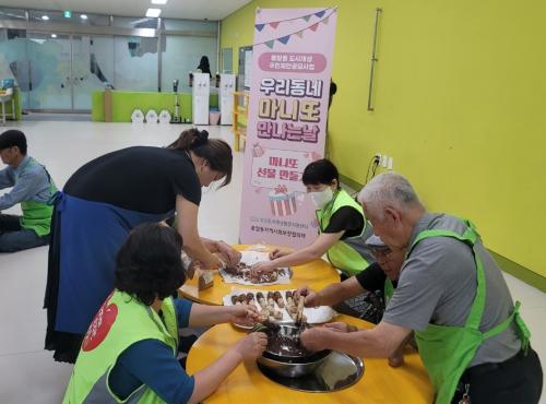 [½Åµ¿¾Æ¹æ¼Û´º½º=ÃÖ¼ÛÈ­±âÀÚ] ±èÇØ½Ã ºÒ¾Ïµ¿ Áö¿ª»çȸº¸ÀåÇùÀÇü(°ø°øÀ§¿øÀå ¼ºÅ¼÷¡¤ÇѼ÷Á¤)´Â Áö³­ 16ÀÏ Áö¿ª µ¶°Å¾î¸£½Å 10¸íÀÌ Âü¿©ÇÑ °¡¿îµ¥ ÀڽŵéÀÇ Ã»¼Ò³â ¸¶´Ï¶Ç¿¡°Ô ¼±¹°ÇÒ ½Ò»©»©·Î ¸¸µé±â üÇèÀ» ÁøÇàÇß´Ù°í ¹àÇû´Ù. ÇùÀÇü°¡ ºÒ¾Ïµ¿ µµ½ÃÀç»ý ÁÖ¹ÎÁ¦¾È¡¦