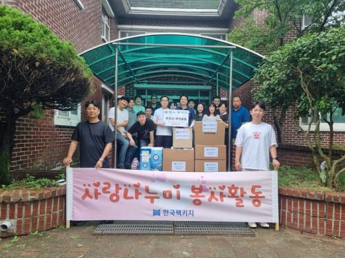 [½Åµ¿¾Æ¹æ¼Û´º½º=¾çÇýÁö±âÀÚ] ±èÇØ½ÃÀÚ¿øºÀ»ç¼¾ÅÍ´Â Çѱ¹ÆÑŰÁö ±èÇØ°øÀå¿¡¼­ ¾Æµ¿»ýȰ½Ã¼³ ¡®µ¿±¤À°¾Æ¿ø¡¯¿¡ 175¸¸¿ø »ó´çÀÇ ÈÄ¿ø ¹°Ç°À» ±âºÎÇß´Ù°í 21ÀÏ ¹àÇû´Ù. Çѱ¹ÆÑŰÁö´Â µ¿±¤À°¾Æ¿øÀ» ¹æ¹®ÇØ ¾ÆÀ̵é°ú ³îÀÌȰµ¿, ½Ç³»⸳¿Ü ȯ°æÁ¤È­È°µ¿À» ÇÏ°í µ¥½º¡¦
