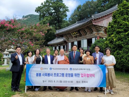 [½Åµ¿¾Æ¹æ¼Û´º½º=¾çÇýÁö±âÀÚ] °æ»ó³²µµ±èÇØ±³À°Áö¿øÃ»(±³À°Àå ¾ÈÅÂȯ)Àº 8¿ù 21ÀÏ(¿ù) ´ëÇÑ ºÒ±³ Á¶°èÁ¾ ÀºÇÏ»ç(ÁÖÁö Çý¼ö ½º´Ô)¿¡¼­ º½º½ »çȸºÀ»ç ÇÁ·Î±×·¥ ¿î¿µÀ» À§ÇÑ ¾÷¹« Çù¾à½ÄÀ» °³ÃÖÇÏ¿´´Ù. À̳¯ ¾÷¹« Çù¾à½ÄÀº º½º½ »çȸºÀ»ç ÇÁ·Î±×·¥ ¿î¿µÃ³ È®´ë¸¦ À§ÇÑ ¡¦