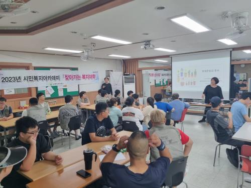 [½Åµ¿¾Æ¹æ¼Û´º½º=ÃÖ¼ÛÈ­±âÀÚ] (Àç)±èÇØ½Ãº¹ÁöÀç´Ü(´ëÇ¥ÀÌ»ç ÃÖÁ¤±Ô)Àº 8¿ù 21ÀÏ ±èÇØ¼­ºÎÀå¾ÖÀÎÀÚ¸³»ýȰ¼¾ÅͰ­Àǽǿ¡¼­ ¼¾ÅÍÀÌ¿ë ¹ß´ÞÀå¾ÖÀÎ 24¸íÀ» ´ë»óÀ¸·Î ½Ã¹Îº¹Áö¾ÆÄ«µ¥¹Ì ã¾Æ°¡´Â º¹Áö¾ßÇРƯ°­À» ½Ç½ÃÇß´Ù. Àç´ÜÀÇ ¡®½Ã¹Îº¹Áö ¾ÆÄ«µ¥¹Ì ã¾Æ°¡´Â º¹Áö¾ßÇС¯¡¦