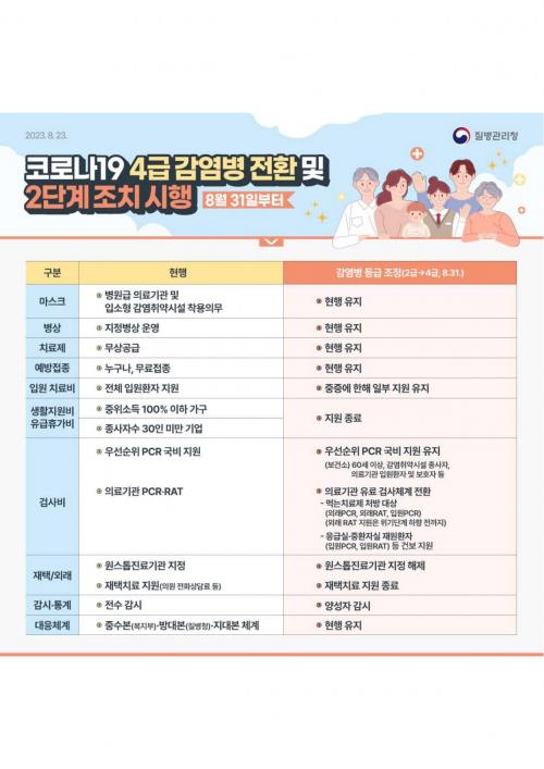 [½Åµ¿¾Æ¹æ¼Û´º½º=ÃÖ¼ÛÈ­±âÀÚ] ¿À´ÃºÎÅÍ Äڷγª19 °¨¿°º´ µî±ÞÀÌ 2±Þ¿¡¼­ 4±ÞÀ¸·Î ÇÏÇâ Á¶Á¤µË´Ï´Ù. Àü¼ö°¨½Ã¸¦ Á¾·áÇϸç Äڷγª19¸¦ µ¶°¨°ú °°Àº ¼öÁØÀ¸·Î °ü¸®ÇÑ´Ü °Çµ¥¿ä. ±æ¾ú´ø ÆÒ´õ¹Í ÅͳÎÀ» Áö³ª ÀÏ»óȸº¹À¸·Î ÇѰÉÀ½ ´õ ´Ù°¡¼­´Â ÇÑÆí, Äڷγª19 °Ë»ç¿Í ¡¦