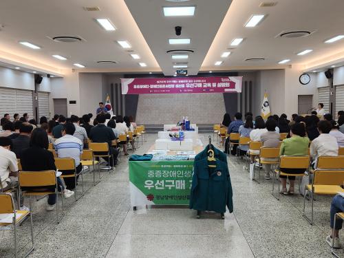 [½Åµ¿¾Æ¹æ¼Û´º½º=ÀÌÁ¶Àº ±âÀÚ] ±èÇØ½Ã´Â Áö³­ 19ÀÏ ´ëȸÀǽǿ¡¼­ ÀüºÎ¼­¿Í À¾¸éµ¿, °ø±â¾÷, Ã⿬±â°ü ±¸¸ÅÆÀÀå ¹× ´ã´çÀÚ 150¿©¸íÀ» ´ë»óÀ¸·Î ÁßÁõÀå¾ÖÀÎ ¹× Àå¾ÖÀÎÇ¥ÁØ»ç¾÷Àå »ý»êǰ ¿ì¼±±¸¸Å ¼³¸íȸ¸¦ °³ÃÖÇß´Ù. À̹ø ¼³¸íȸ´Â ÁßÁõÀå¾ÖÀÎ ¹× Àå¾ÖÀÎÇ¥ÁØ»ç¾÷Àå »ý»ê¡¦