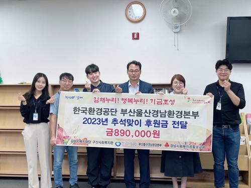 [½Åµ¿¾Æ¹æ¼Û´º½º=ÀÌÁ¶Àº±âÀÚ] Çѱ¹È¯°æ°ø´Ü ºÎ»ê¿ï»ê°æ³²È¯°æº»ºÎ(º»ºÎÀå ±èµ¿¿î)´Â 9¿ù 21ÀÏ(¸ñ) (Àç)±èÇØ½Ãº¹ÁöÀç´Ü(´ëÇ¥ÀÌ»ç ÃÖÁ¤±Ô) ±¸»ê»çȸº¹Áö°ü¿¡ Ãß¼®À» ¸ÂÀÌÇÏ¿© ÈÄ¿ø±Ý 890,000¿øÀ» Àü´ÞÇß´Ù. ºÎ»ê¿ï»ê°æ³²È¯°æº»ºÎ Á÷¿ø 27¸íÀÌ Áö¿ª»çȸ ±âºÎȰµ¿¿¡ µ¿¡¦